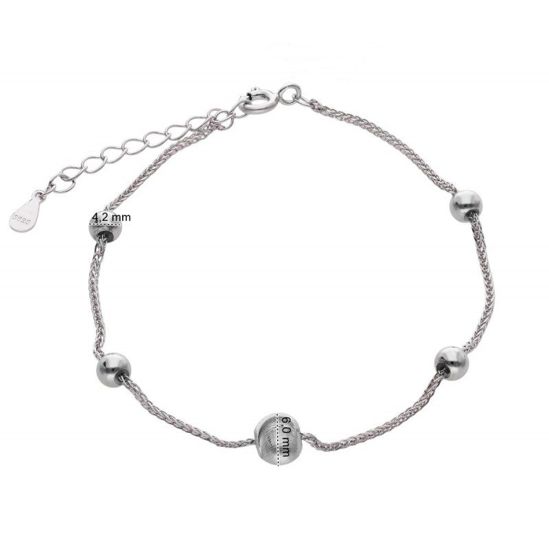 Bransoletkę zdobią kulki o średnicy ok. 4,2 mm i 6 mm, które nadają całości lekkości i nowoczesnego charakteru. Prosta forma sprawia, że model pasuje zarówno do zegarka, jak i innych bransoletek, tworząc modne zestawy warstwowe.