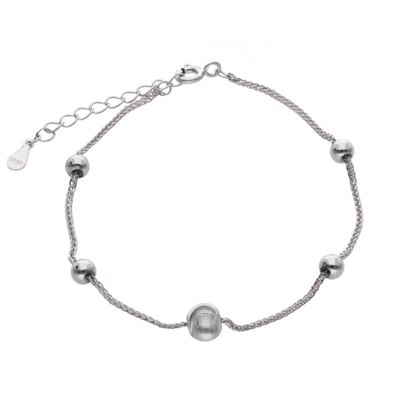 Delikatna bransoletka srebrna z kulkami to minimalistyczna biżuteria, która świetnie sprawdzi się na co dzień oraz jako subtelny dodatek do eleganckich stylizacji. Wykonana z rodowanego srebra próby 925, zachowuje trwały połysk i jest bardziej odporna na ciemnienie.