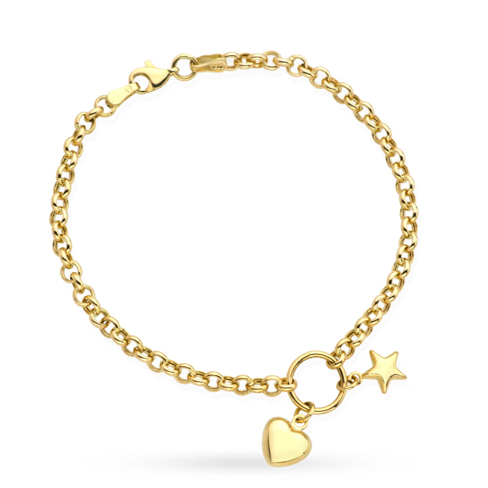 Bransoletka z sercem i gwiazdką pr. 585, dł. 18,5 cm. Subtelny model z żółtego złota o symbolicznym wzorze – zamów online.