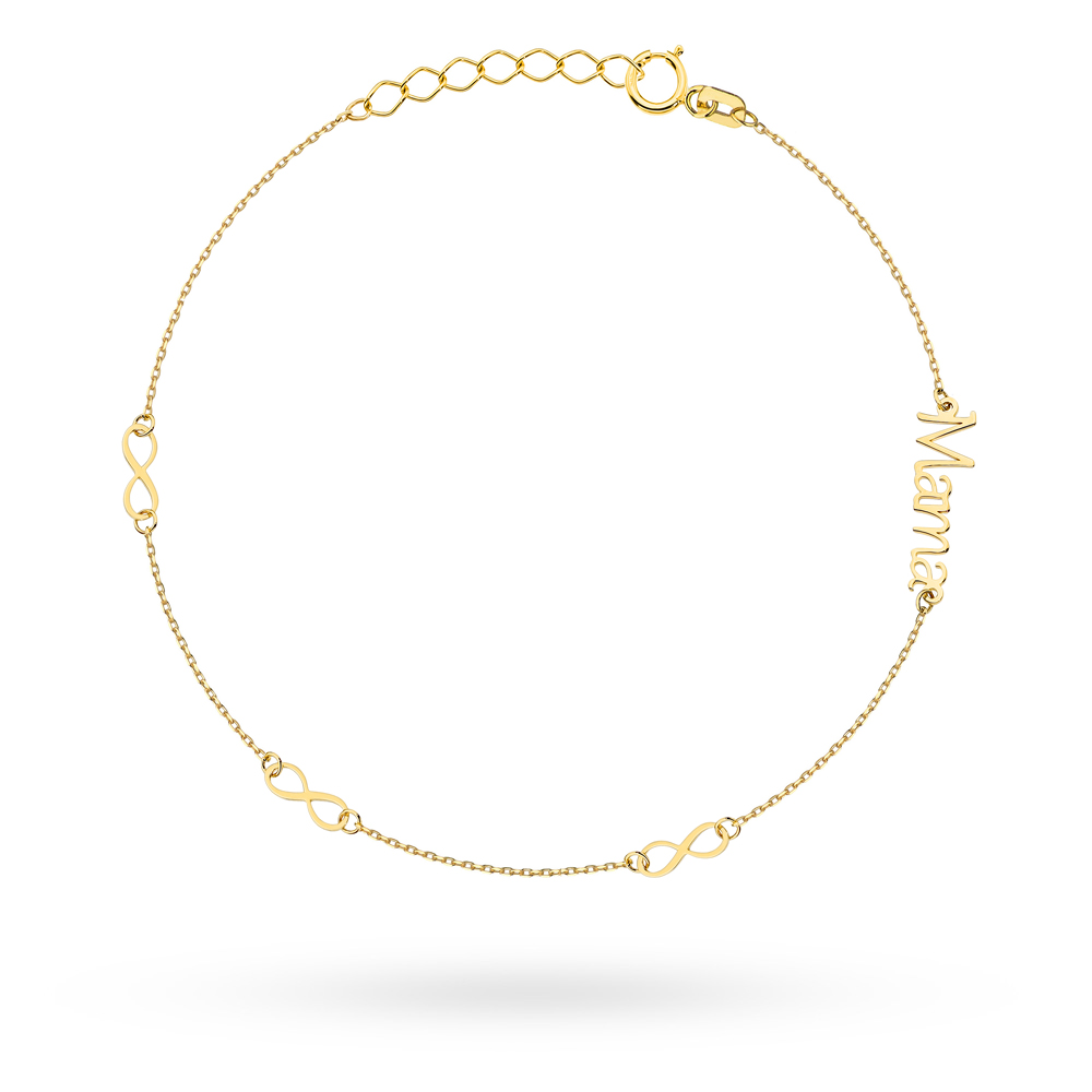 ✨ Złota bransoletka „Mama” ze znakiem nieskończoności 585 ✨