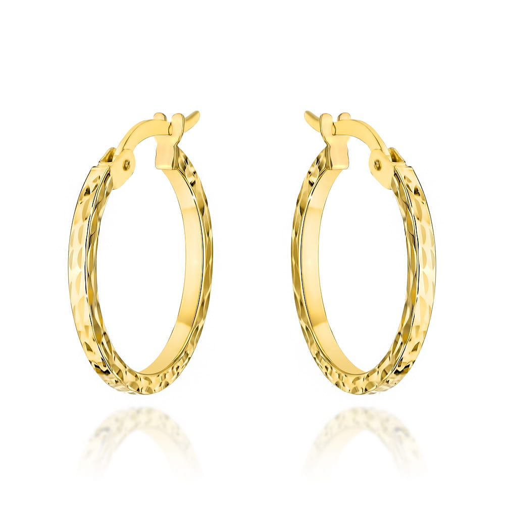 Kolczyki złote koła z diamentowaniem to wybór dla kobiet ceniących klasyczną formę połączoną z subtelnym blaskiem i wyjątkowym wykończeniem.