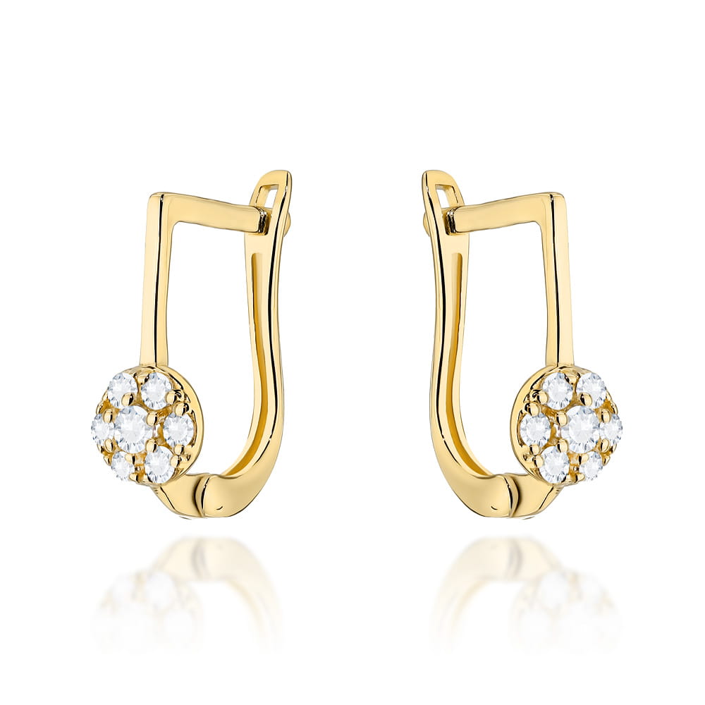 Złote kolczyki kółeczka wysadzane cyrkoniami to elegancka i subtelna biżuteria, idealna do codziennych stylizacji i wyjątkowych okazji. Wykonane z żółtego złota próby 585, zdobione błyszczącymi cyrkoniami i wyposażone w angielskie zapięcie, zachwycają klasyczną formą.