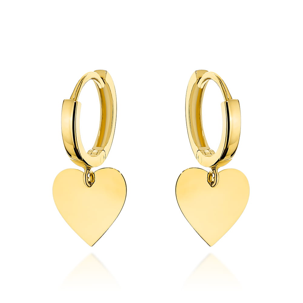 Kolczyki złote kółeczka z wiszącym sercem to biżuteria, która łączy subtelność i romantyczny charakter. Wykonano je z żółtego złota próby 585, które zachwyca elegancją i trwałością. Delikatne serce o wymiarach ok. 7,5 × 6,5 mm zawieszono na kółku o średnicy ok. 12 mm. Smukła szyna ma 2 mm szerokości, a całkowita długość kolczyków wynosi 19 mm. Zapięcie typu kreol gwarantuje komfort i bezpieczeństwo noszenia. To idealny wybór na co dzień oraz piękny prezent pełen symboliki.
