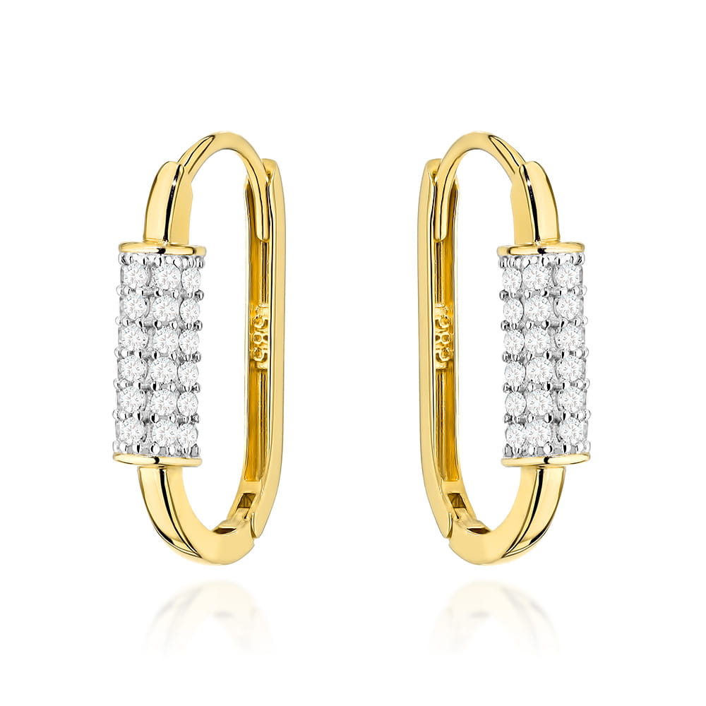 Złote kolczyki owale zdobione cyrkoniami na angielskim zapięciu