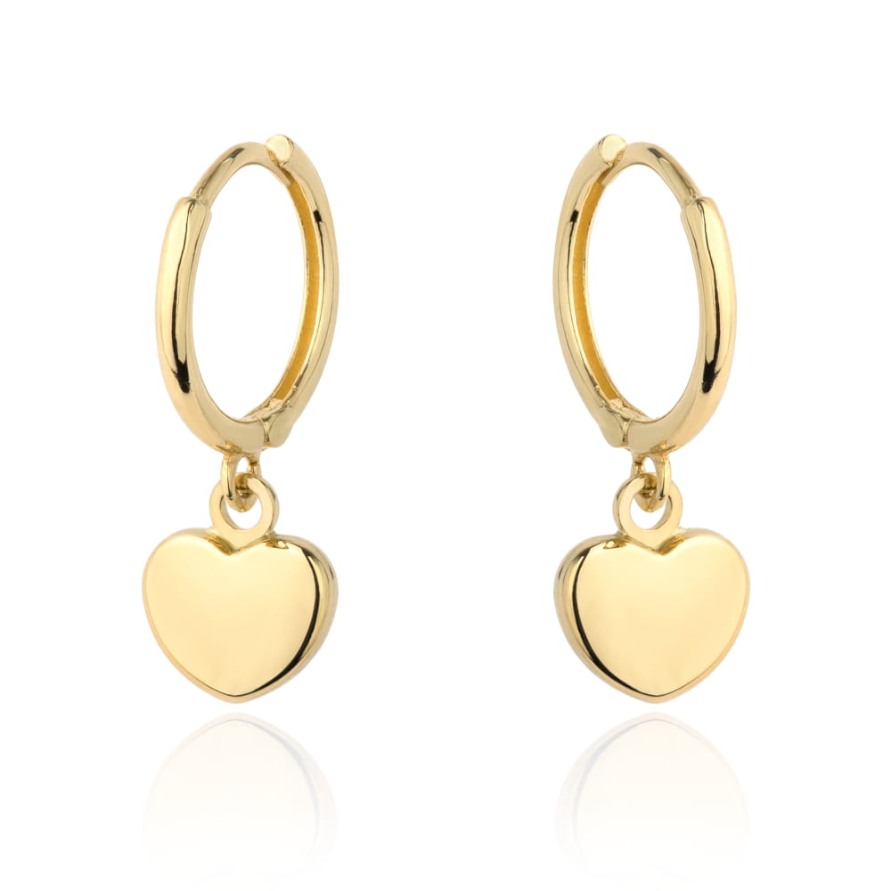 Kolczyki złote serce zawieszone na kółku typu kreol z żółtego złota próby 585. Lekka forma, delikatny motyw serca i elegancki styl.
