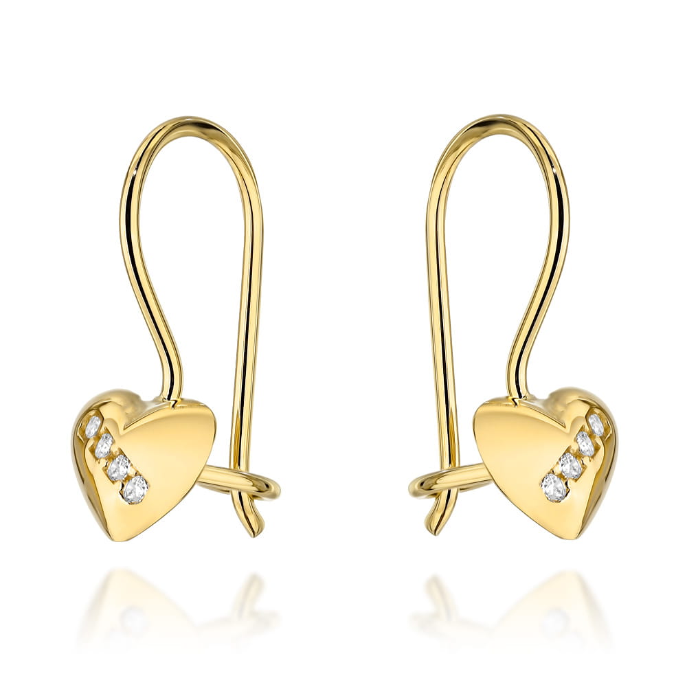 Kolczyki złote serduszka z cyrkoniami na biglu to doskonały prezent dla ukochanej osoby.