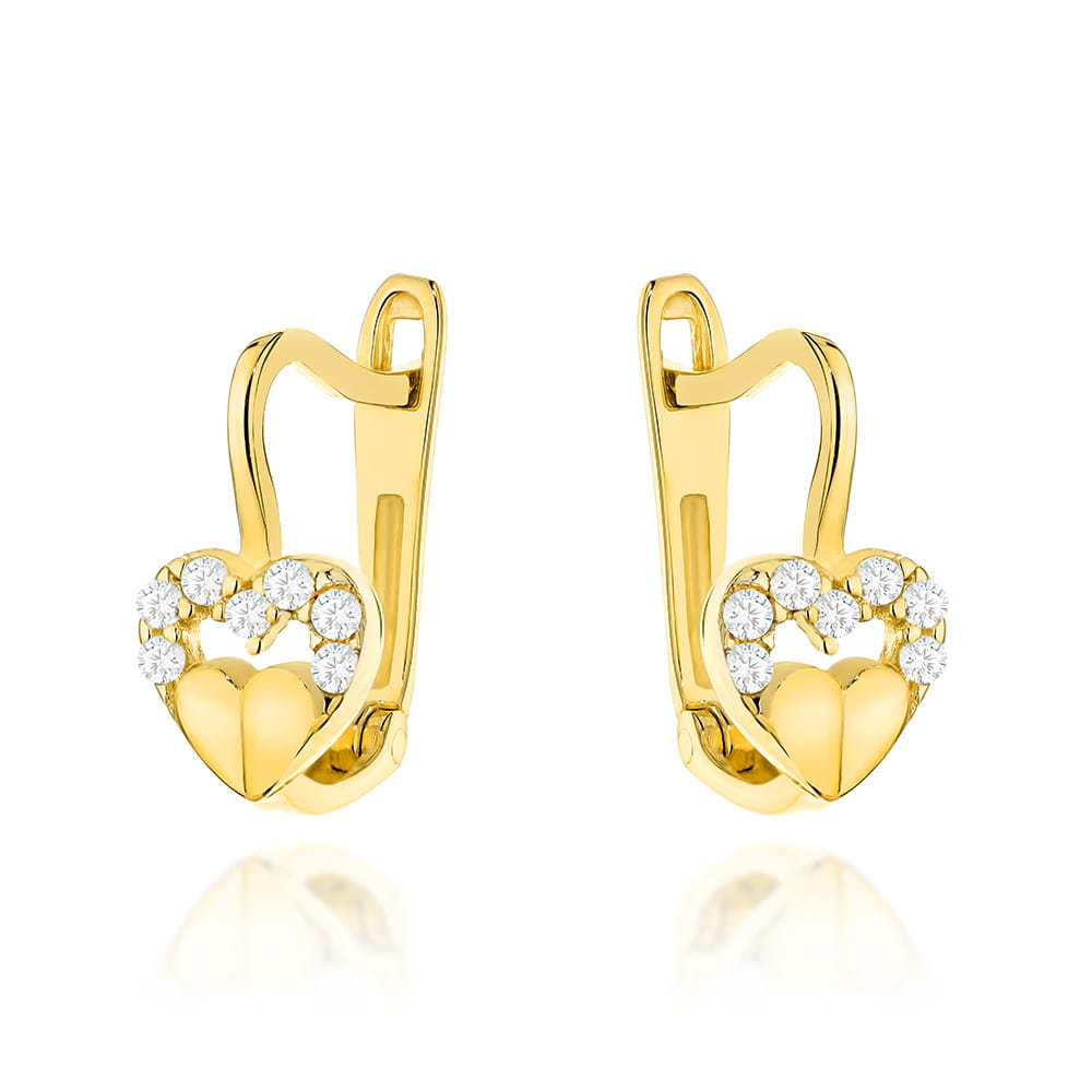Kolczyki złote serduszko w sercu z cyrkonii na angielskim zapięciu – złoto 585