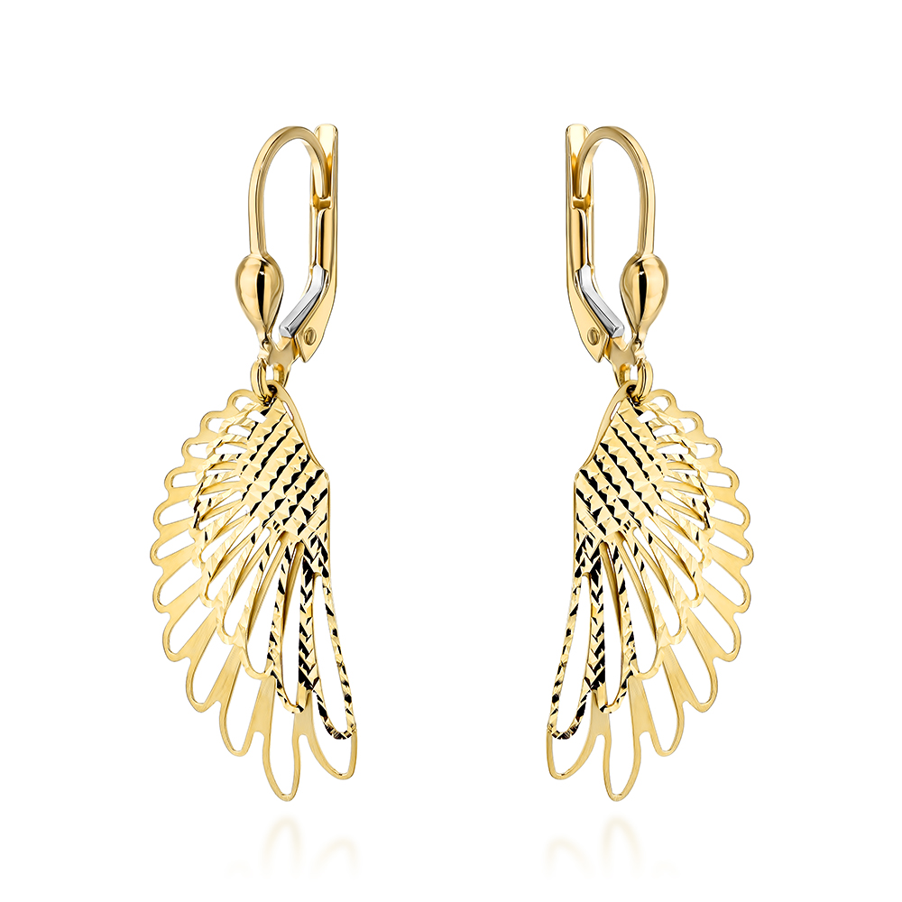 💛 Złote kolczyki skrzydła diamentowane – elegancja i lekkość w złocie 585