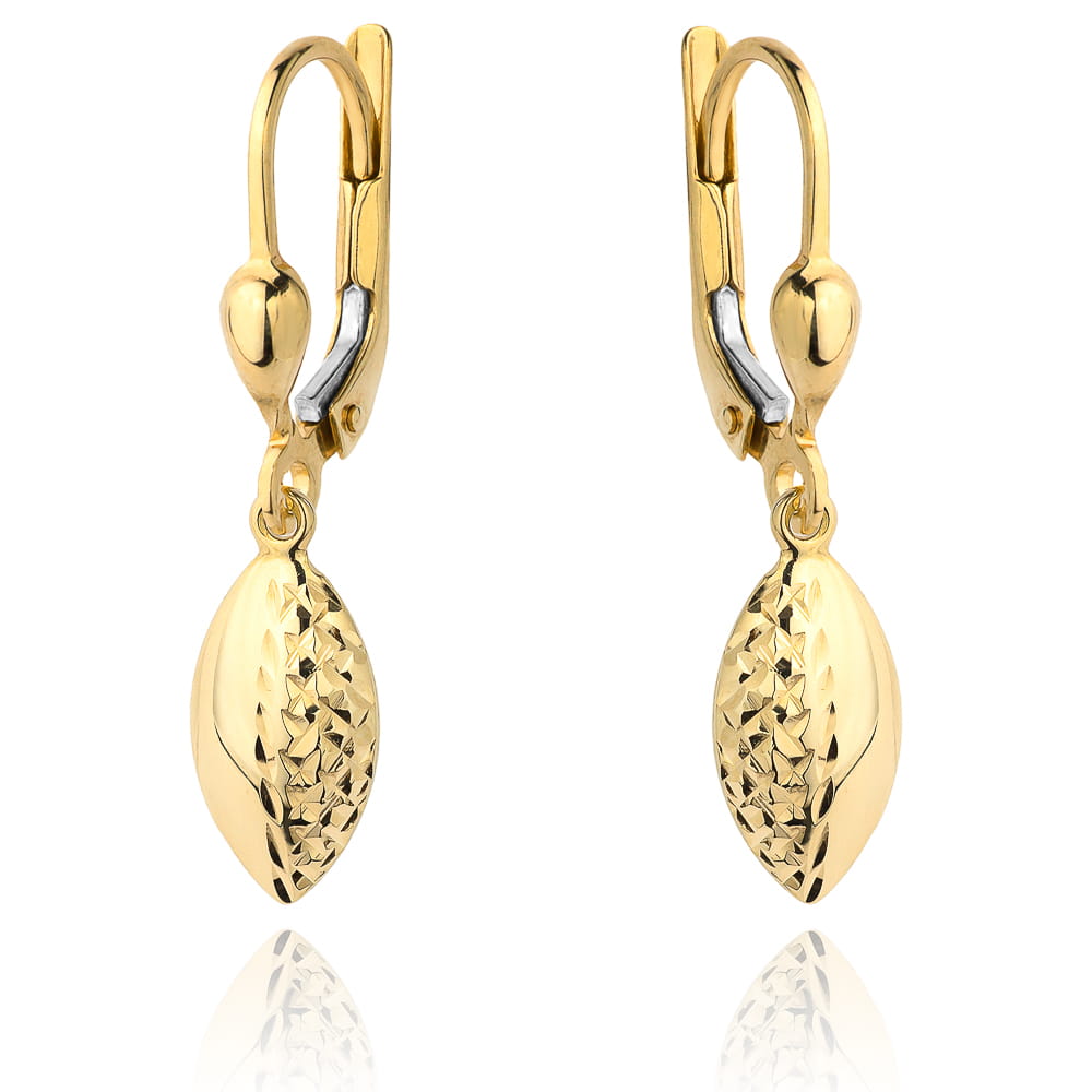 Kolczyki złote wiszące owal pół diamentowany – angielskie zapięcie, złoto 585
