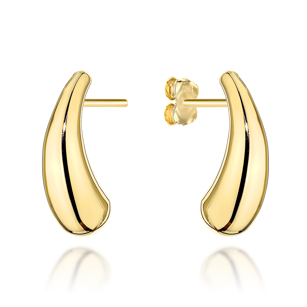 To kolczyki złote bez kamienia, co czyni je uniwersalnym dodatkiem dla każdej kobiety, niezależnie od wieku i okazji. Zapięcie typu sztyft gwarantuje wygodę i bezpieczeństwo noszenia, a minimalistyczny design sprawia, że doskonale komponują się z inną biżuterią ze złota.
