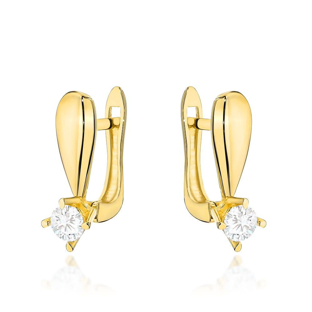 Złote kolczyki z centralną cyrkonią na angielskim zapięciu