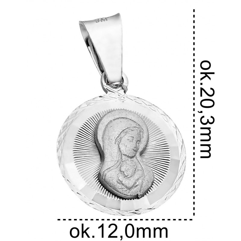 Elegancki srebrny medalik, wykonany z najwyższej jakości srebra próby 925. Doskonały na prezent lub jako wyjątkowy dodatek do codziennej stylizacji. Klasyczny design i precyzyjne wykonanie sprawiają, że medalik będzie piękną pamiątką na lata.