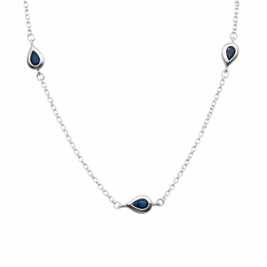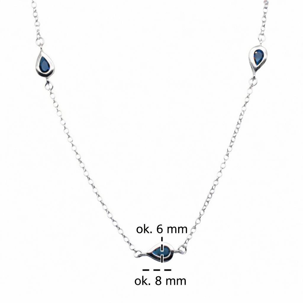Naszyjnik srebrny 925 łezki z niebieską cyrkonią – rodowany, długi