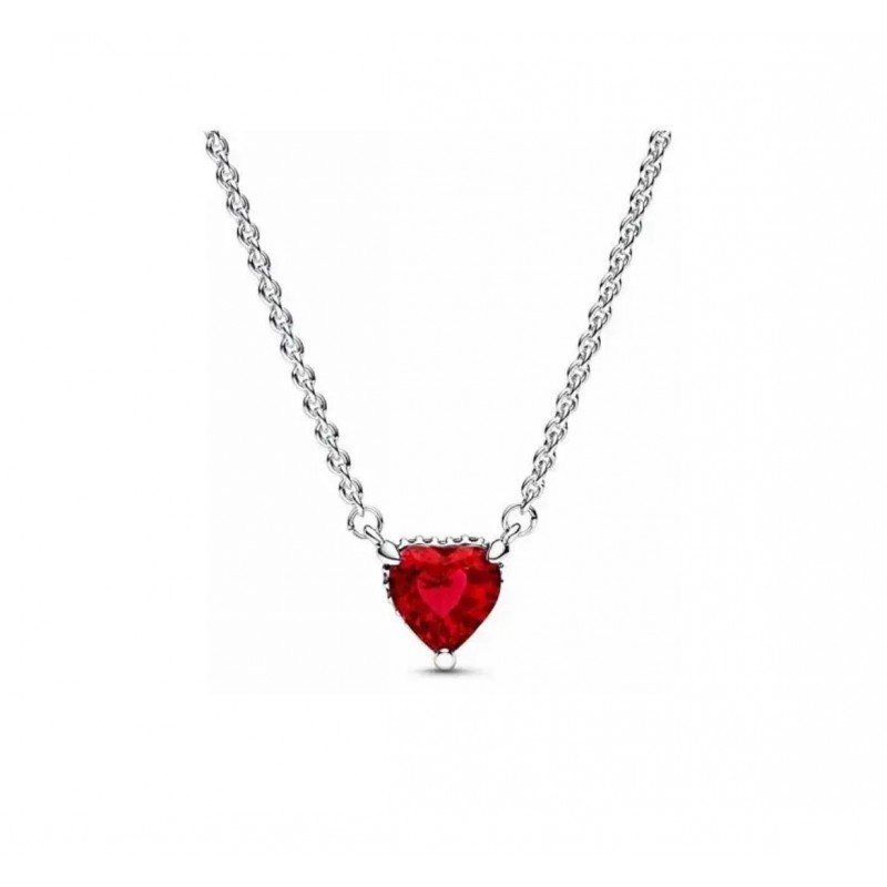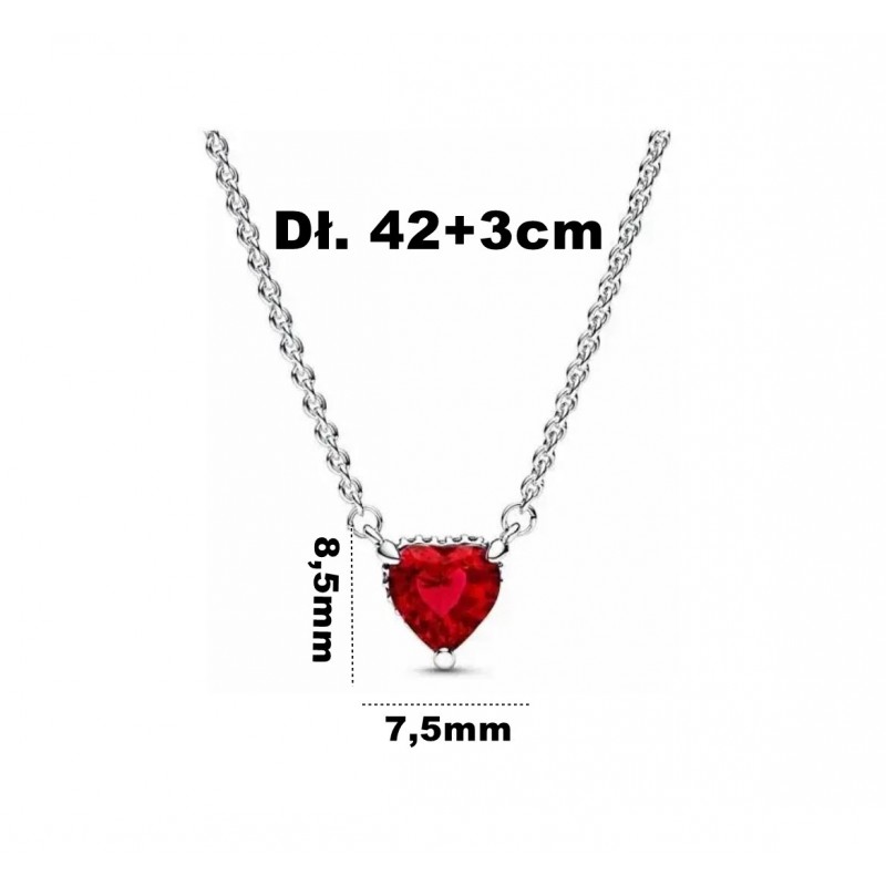 Naszyjnik srebrny serce z czerwoną cyrkonią