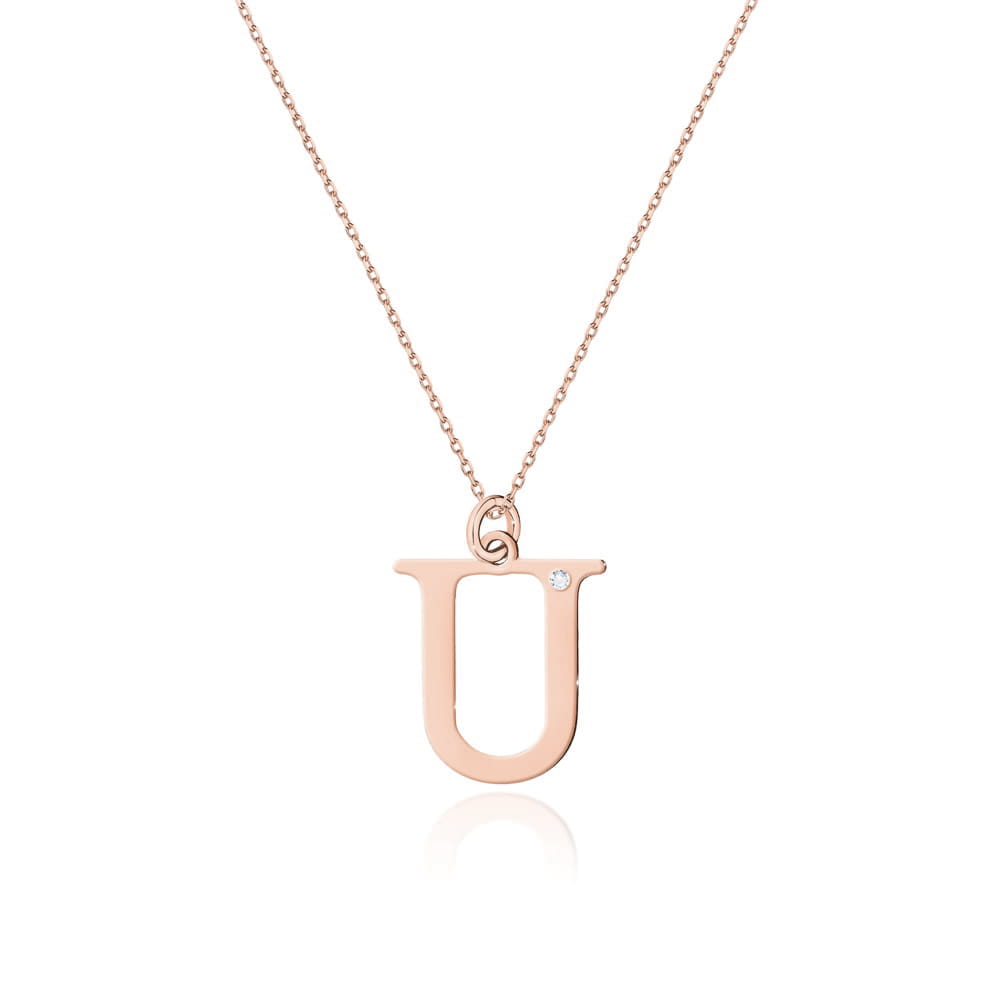 Elegancki naszyjnik złoty z literką U i diamentem to biżuteria o ponadczasowym wdzięku. Wykonano go z wysokiej jakości złota próby 585 w odcieniu różowego złota, które nadaje mu ciepły i kobiecy blask.