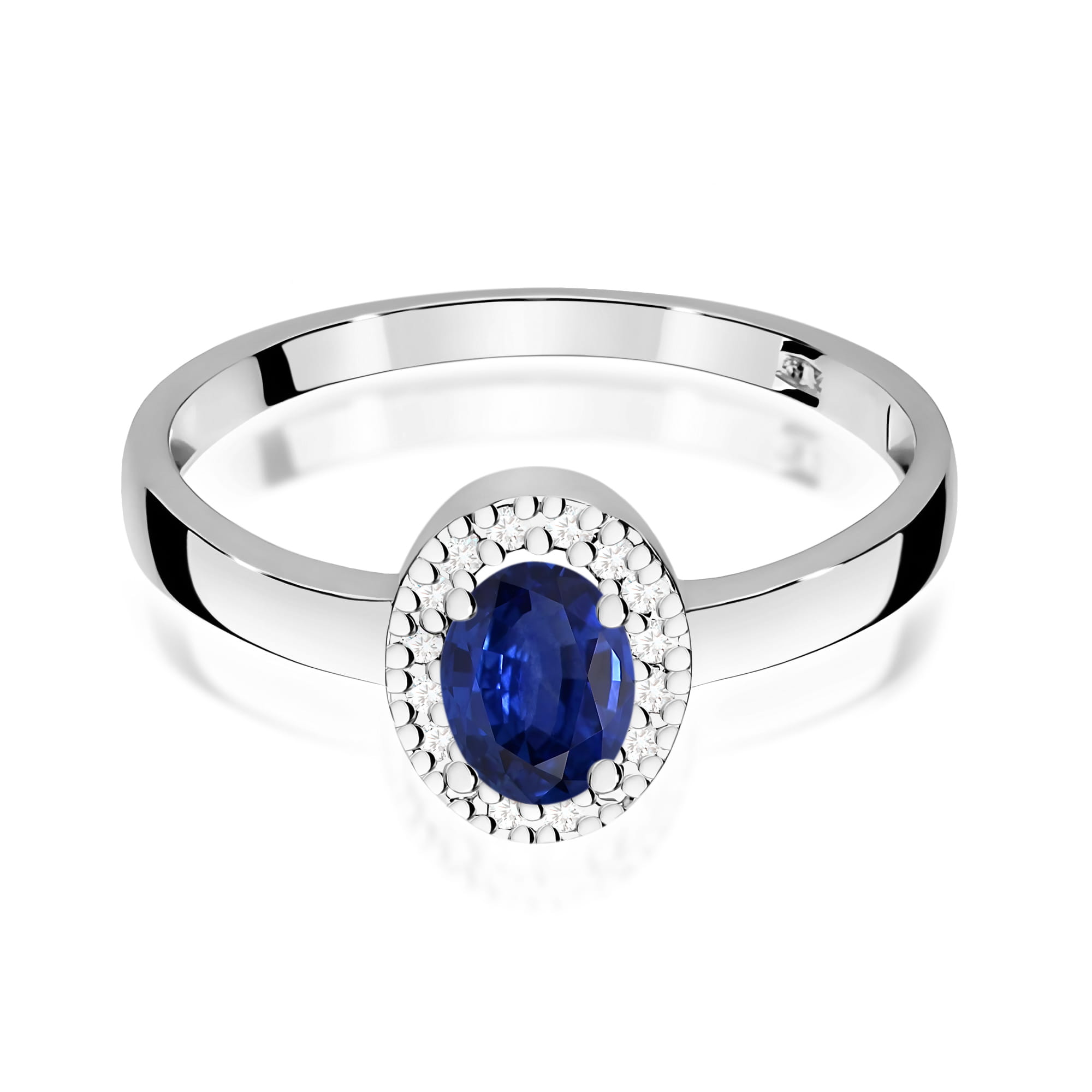 Luksusowy pierścionek z szafirem i diamentami wykonano z wysokiej jakości białego złota próby 585. Elegancki design i intensywny kolor kamienia sprawiają, że biżuteria prezentuje się wyjątkowo szlachetnie.