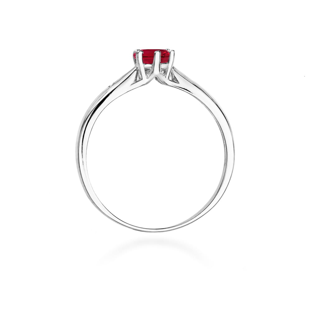 Ten olśniewający pierścionek z rubinem i diamentami wykonano z najwyższej jakości białego złota próby 585. Jego klasyczna forma i intensywna barwa przyciągają wzrok i wzbudzają emocje. To biżuteria idealna na zaręczyny, wyjątkowy prezent lub luksusowy dodatek.