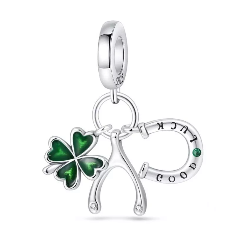 Srebrny charms w kształcie symboli szczęścia, wykonany z najwyższej jakości srebra próby 925. Idealna zawieszka do bransoletki lub łańcuszka, która doda wyjątkowego znaczenia Twojej biżuterii. Perfekcyjny prezent na szczęśliwe chwile!