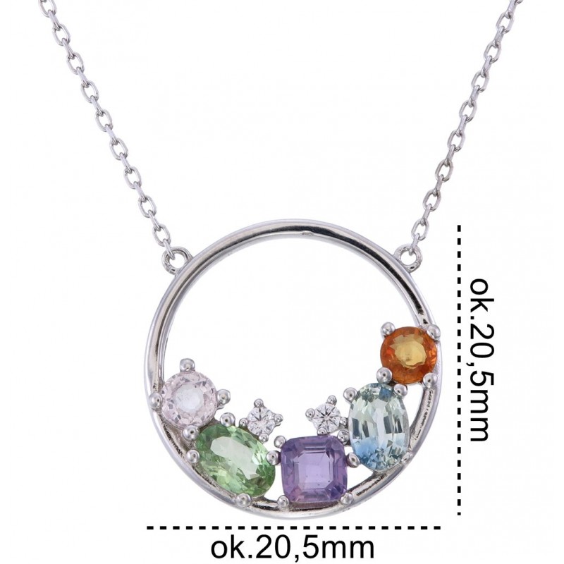 Srebrny naszyjnik z kolorowymi szafirami to wyjątkowy element biżuterii, który łączy w sobie elegancję i oryginalność. Naszyjnik ozdobiony jest szafirami w różnych odcieniach – od intensywnego niebieskiego, przez soczystą zieleń, po subtelny róż i ciepły żółty. Każdy kolor symbolizuje różne emocje i cechy, dodając osobistego uroku. Idealny na co dzień oraz na specjalne okazje.