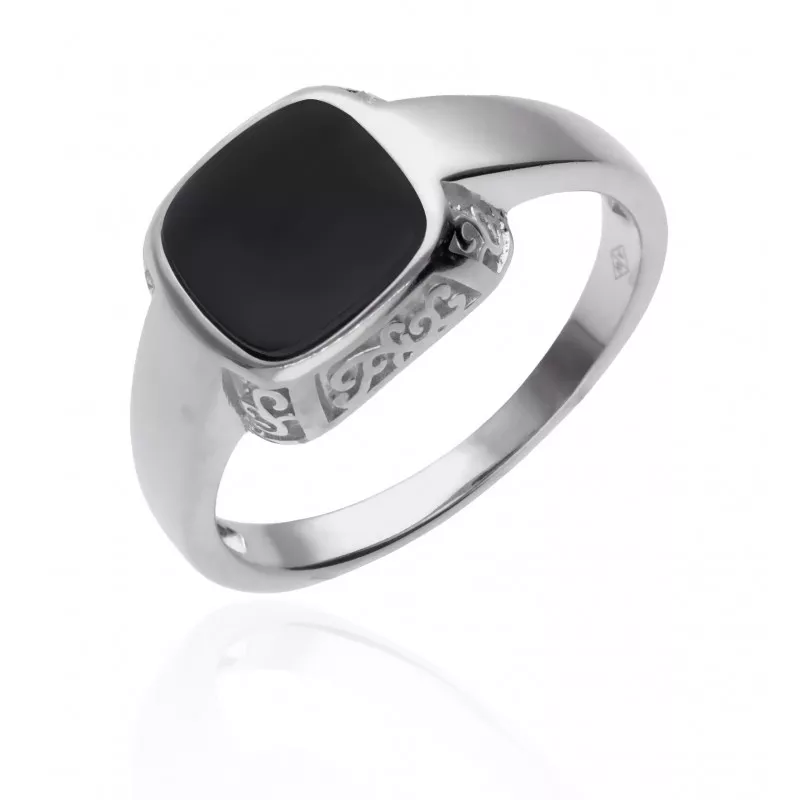 Czarny onyks doskonale podkreśla męski charakter biżuterii, czyniąc sygnet nie tylko ozdobą, ale także symbolicznym dodatkiem o silnym znaczeniu.