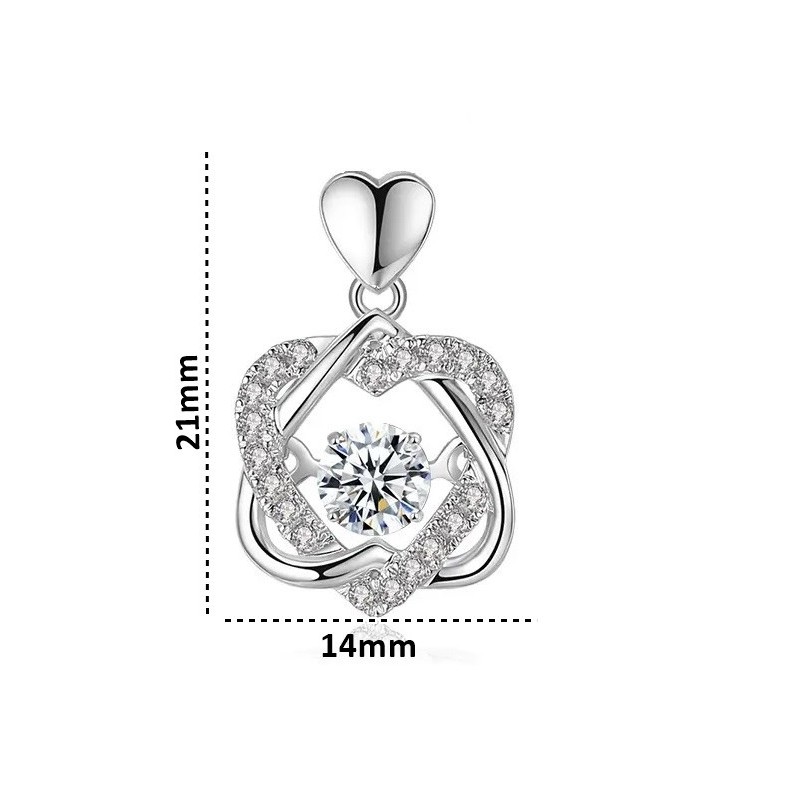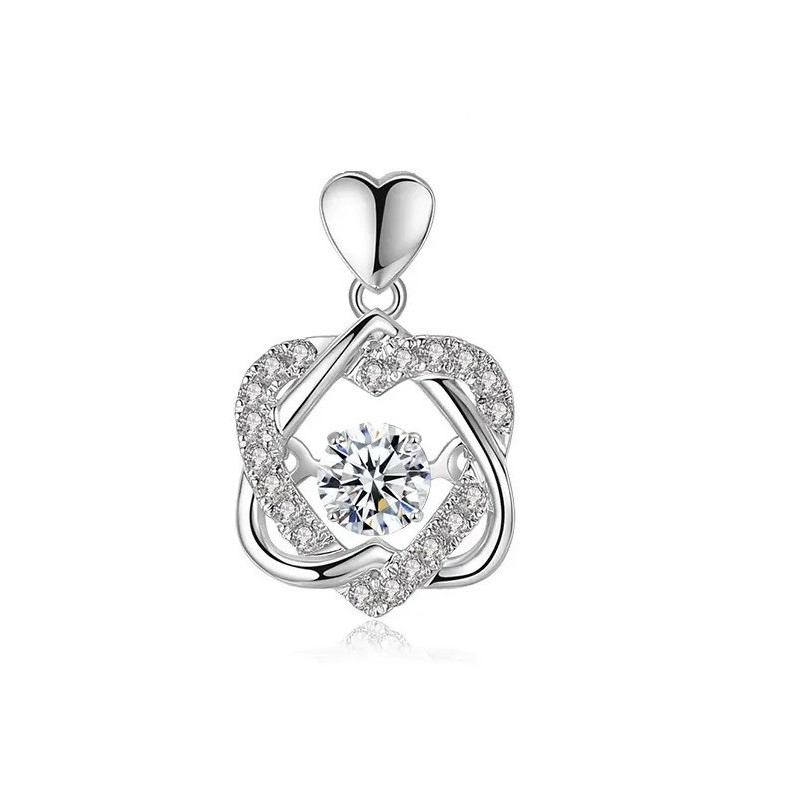 W centralnej części, wewnątrz dwóch serc, umieszczono dużą cyrkonię, która stanowi główny element dekoracyjny i nadaje zawieszce eleganckiego blasku. Dodatkowym akcentem jest przywieszka w kształcie serca, co sprawia, że biżuteria prezentuje się lekko i efektownie.