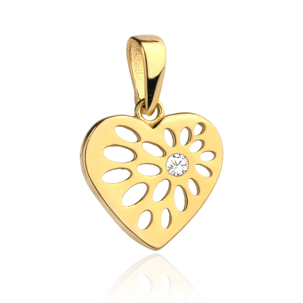 Złota zawieszka wzorzyste serduszko z cyrkonią to biżuteria pełna uroku i blasku.