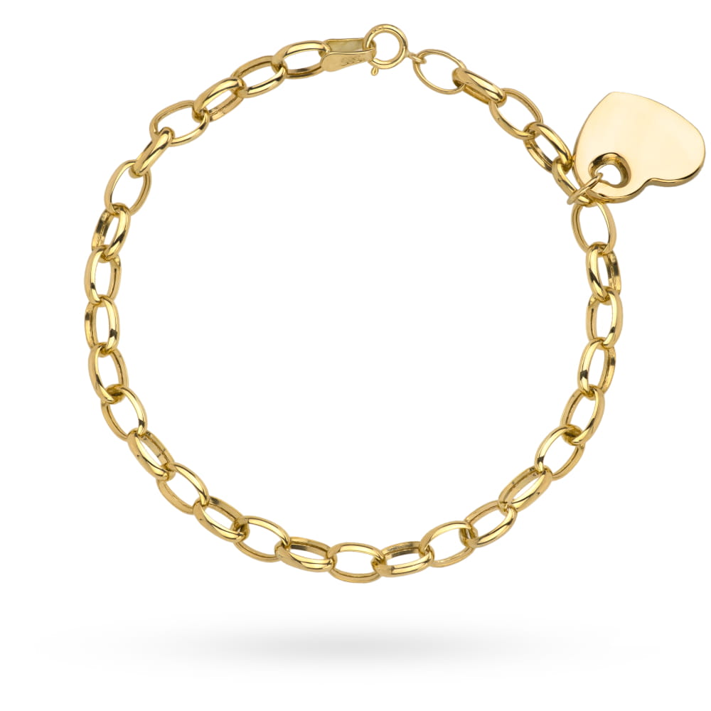 Złota bransoletka ze splecionymi owalami i pełnym sercem z żółtego złota próby 585. Solidna forma i elegancki design.