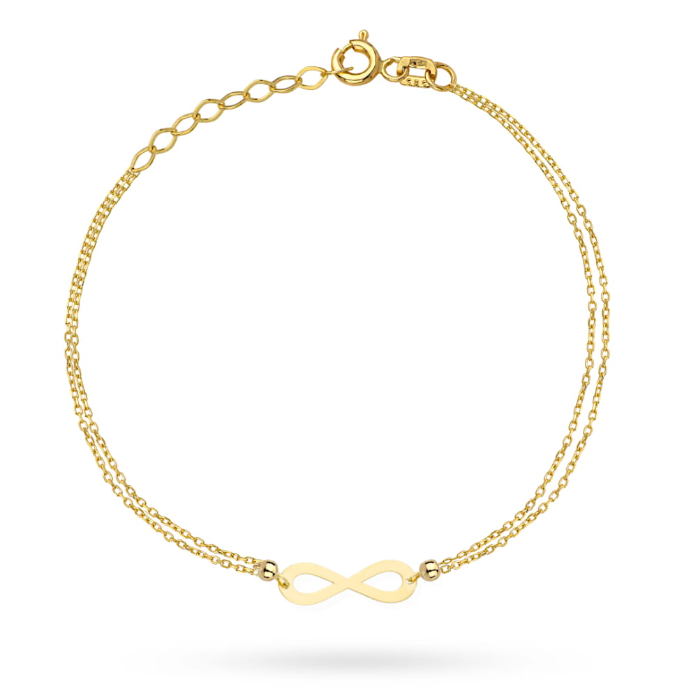 Złota bransoletka znak nieskończoności na podwójnym łańcuszku
