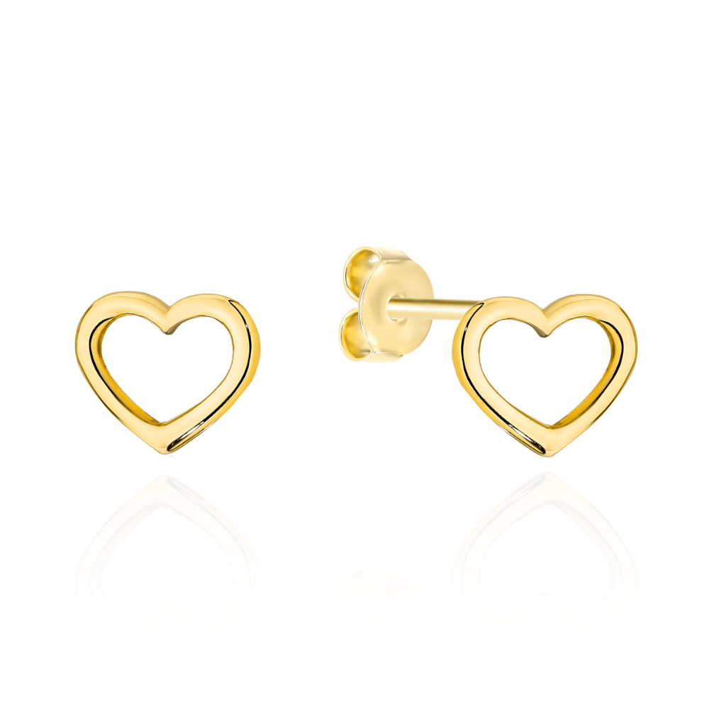 Złote kolczyki kontury serc ze złota próby 585. Delikatne kolczyki na sztyft o minimalistycznym designie, idealne na co dzień i na prezent.