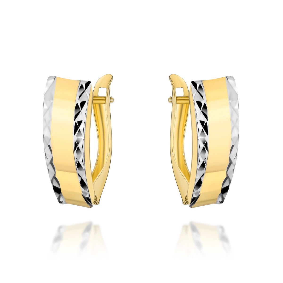 Złote kolczyki z diamentowanymi brzegami i gładkim środkiem pr. 585