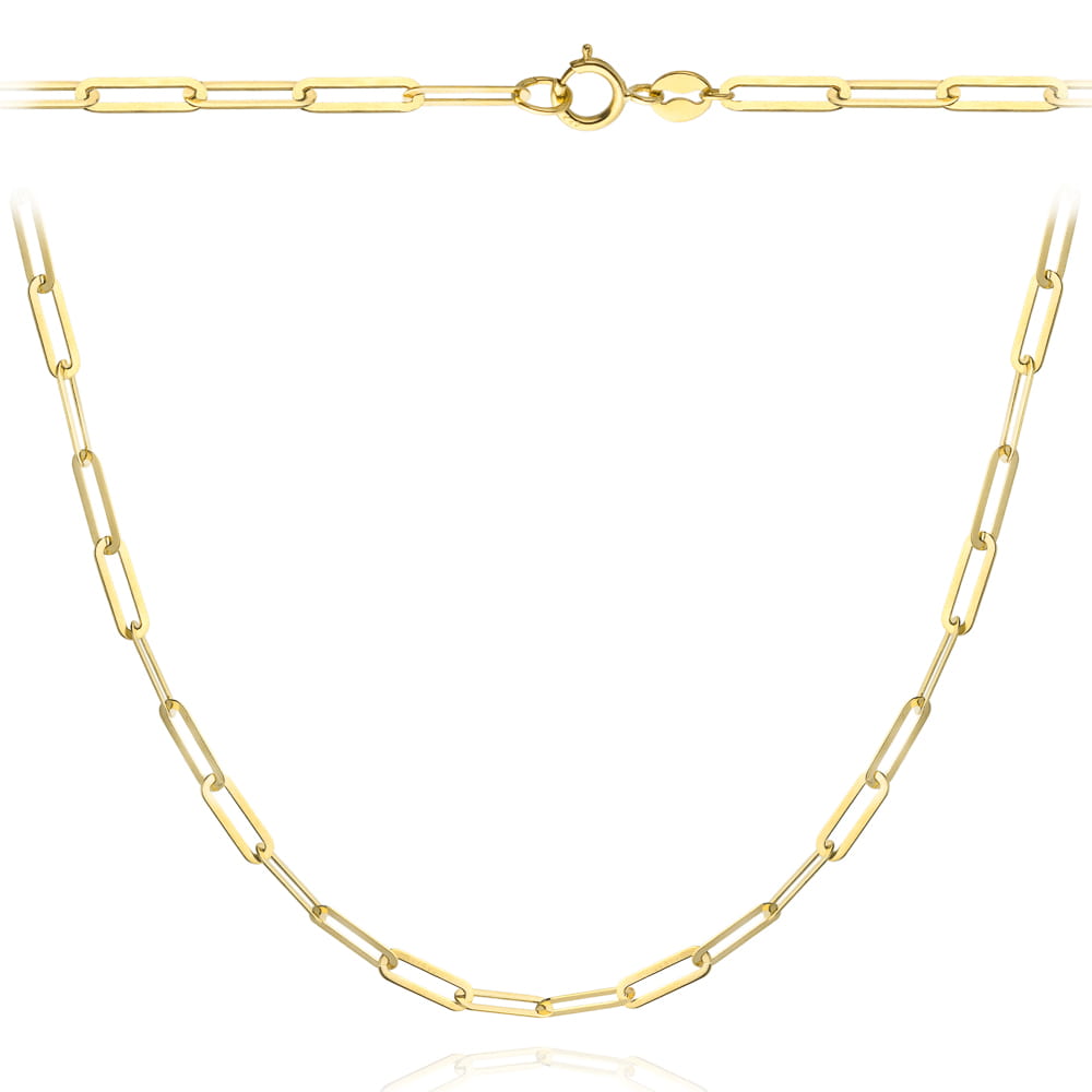 Złoty naszyjnik delikatne długie ogniwa 45 cm z żółtego złota próby 585. Owalne ogniwa 8 mm i minimalistyczny styl.