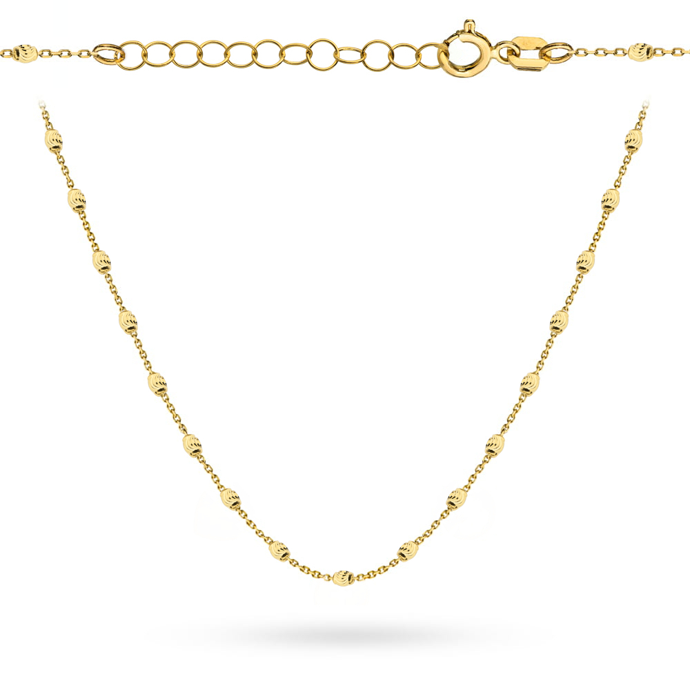 Złoty naszyjnik z diamentowanymi owalnymi elementami wykonany z żółtego złota próby 585. Delikatny naszyjnik z regulacją długości.