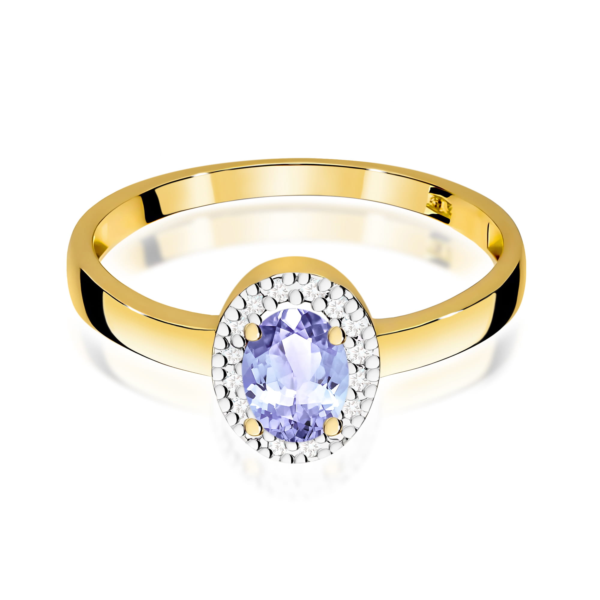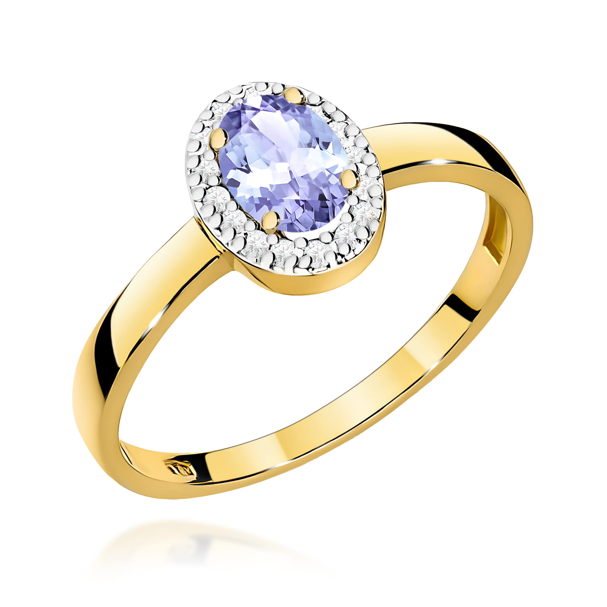 Złoty pierścionek z tanzanitem 0,40 ct i diamentami – złoto 585